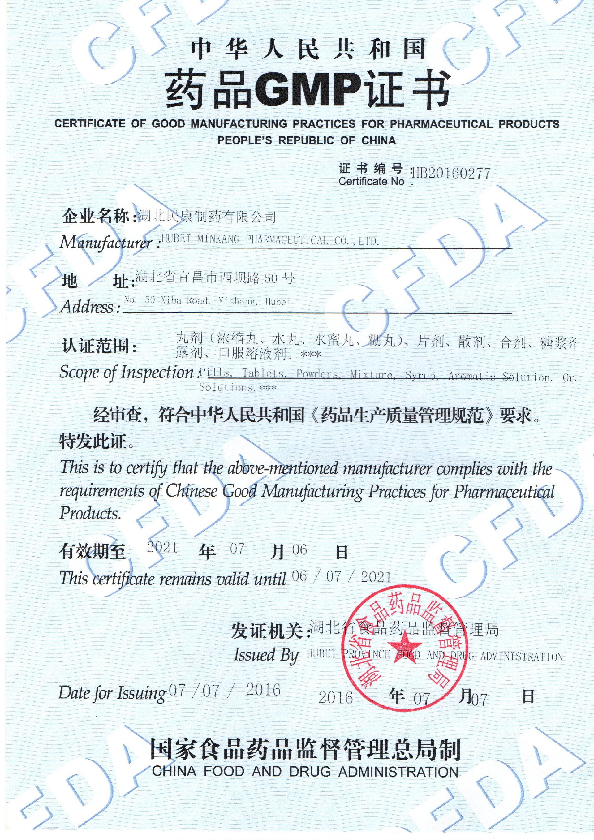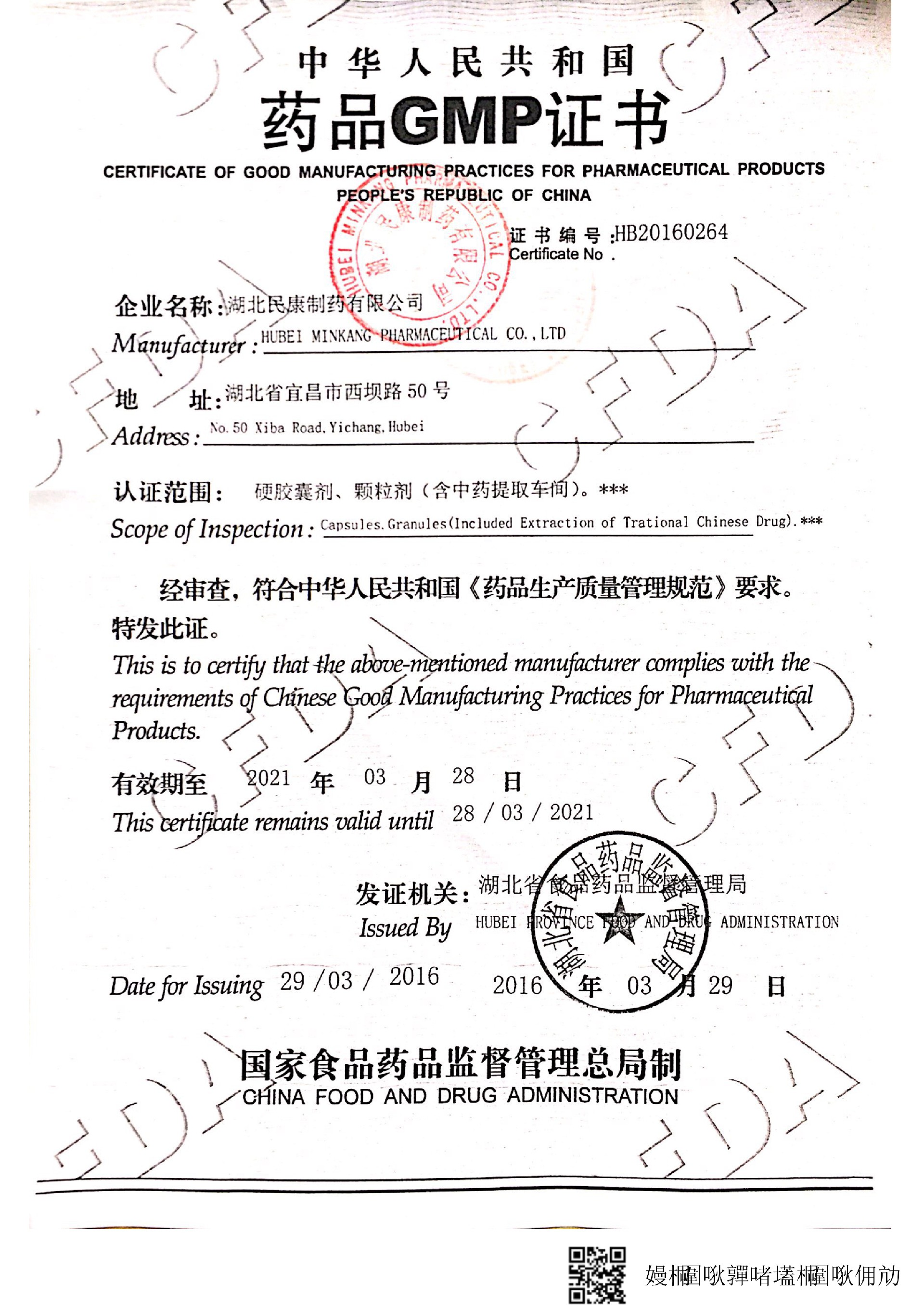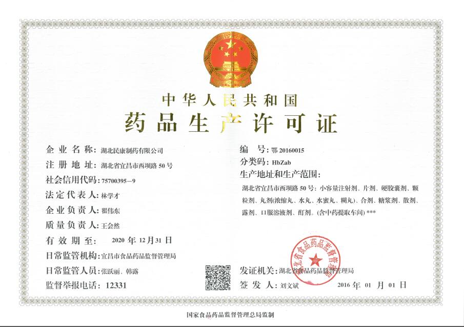 民康2003年全面通過了國家GMP認證,建有符合GMP要求的片劑、膠囊劑、顆粒劑、丸劑、散劑、口服液、糖漿劑、口服溶液劑、合劑、露劑、小容量注射劑等十余條現(xiàn)代化生產(chǎn)線和倉儲設施,耗資百余萬元建立了先進的污水處理系統(tǒng)。斥巨資引進了1~20ml注射劑洗、烘、灌聯(lián)動線、全自動壓片機、口服液全自動洗、烘、灌、軋聯(lián)動線、微波干燥滅菌機、高效包衣機等數(shù)十套先進設備,及紅外分光光度計、紫外分光光度計、雙波長薄層掃描儀、原子吸收分光光度計、智能溶出度儀、高效液相色譜儀、氣相色譜儀等高精度檢驗儀器。